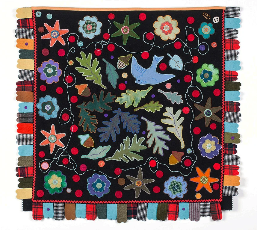 LIZ ALPERT FAY :: LEAVES ARE GREEN, NUTS ARE BROWN :: wool, pearl cotton thread, hand stitched :: 28.5 x 30