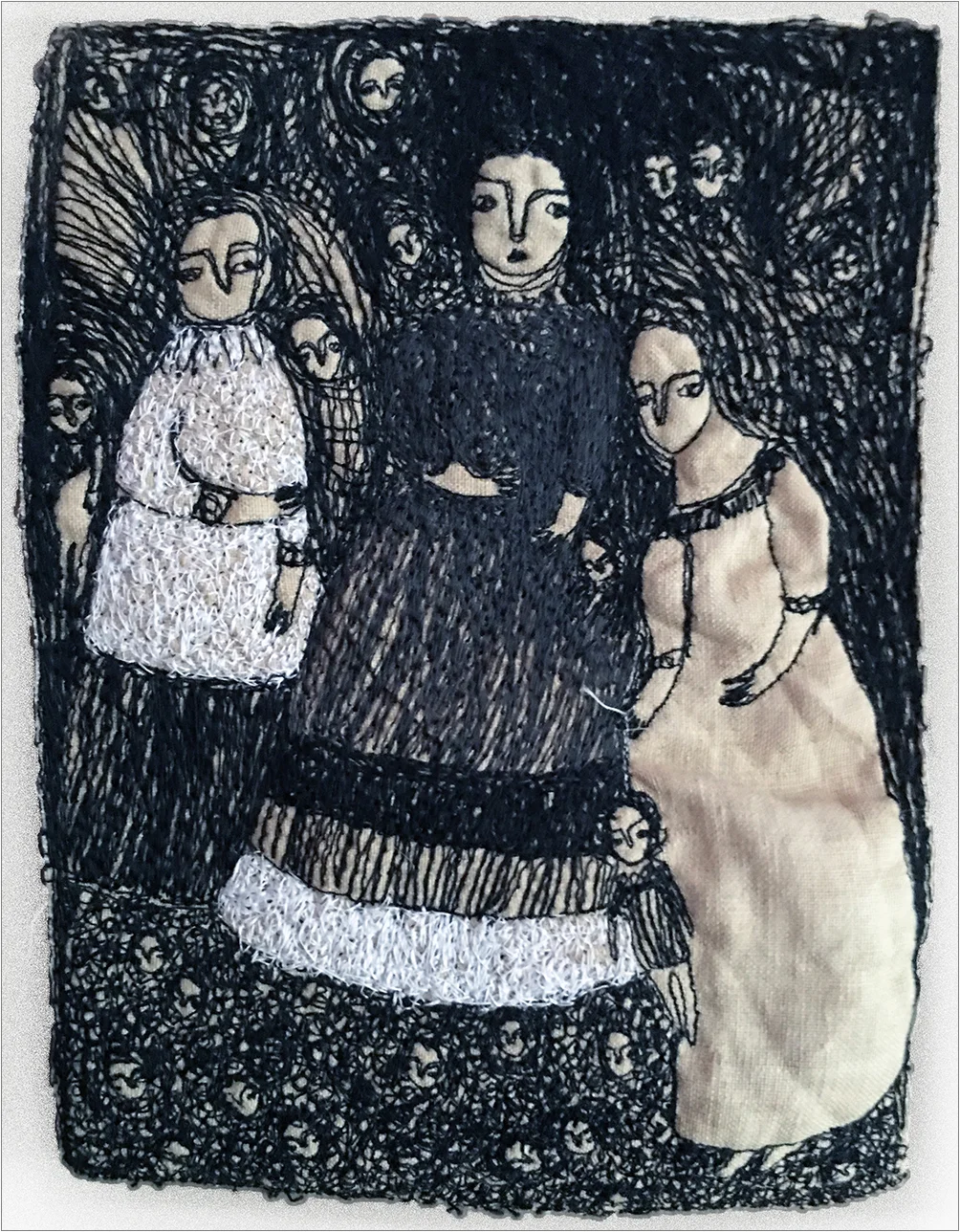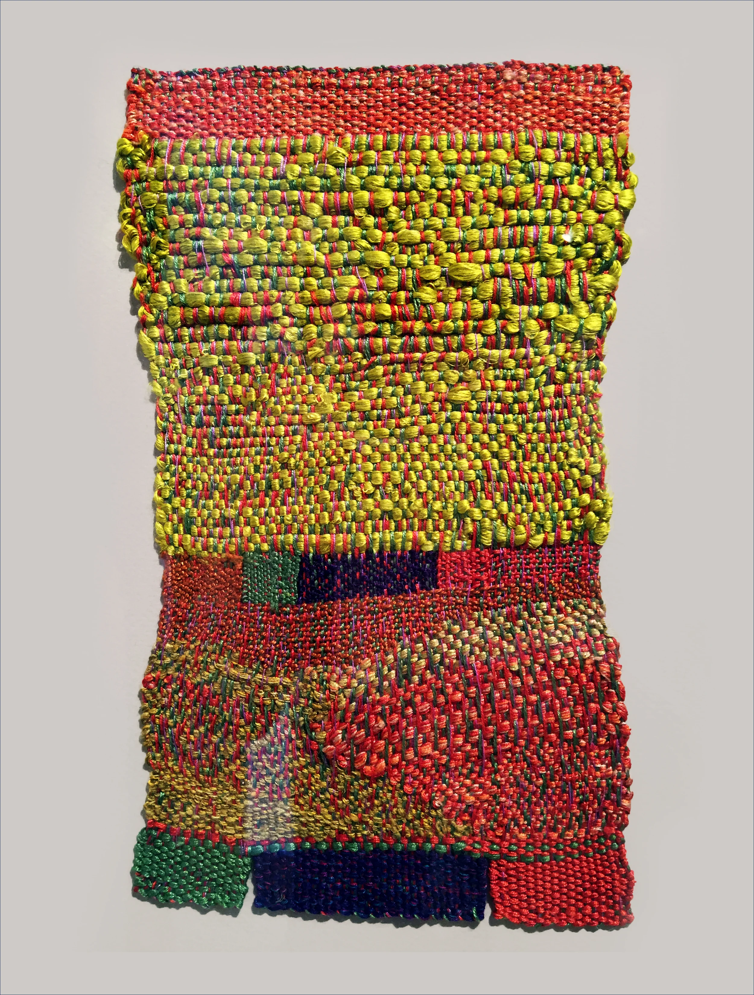 After our really special visit with Dayna, we headed downstairs to wander through the current show, By a Thread: The Fine Art of Fiber. The collection of works, curated by Nancy Moore, is a wonderful offering of fiber art from some of Connecticut’s most exciting fiber artists at work today.